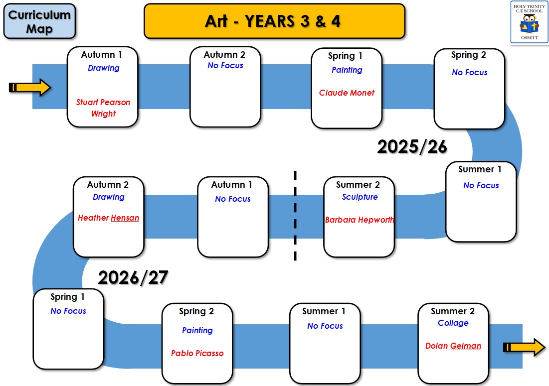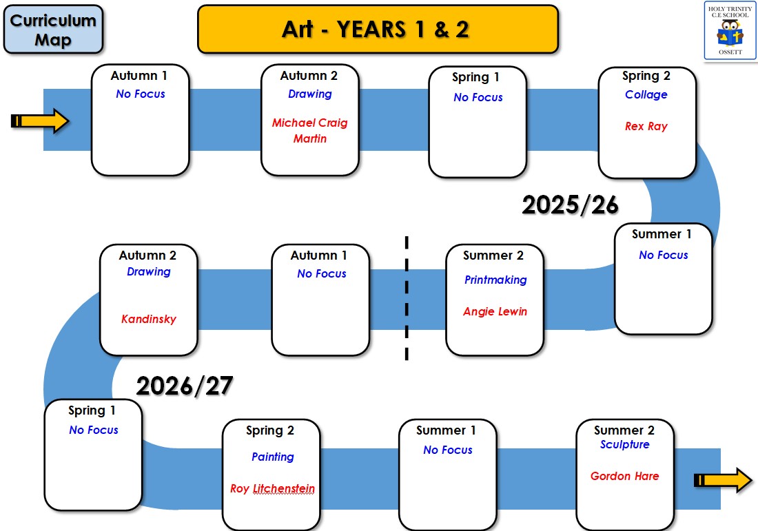 "At Holy Trinity, we strive to allow our children to express themselves creatively and through the subject of Art we provide our children with the opportunity to be engaged, inspired and challenged as creative artists! Children will not only be equipped with the knowledge and skills to allow them to experiment with different art forms, but also they will be given the chance to invent and create their own art projects using a variety of art, design and craft skills.